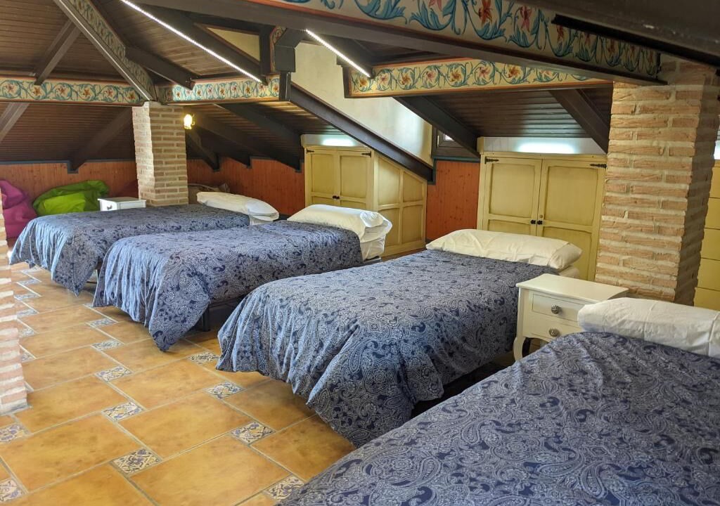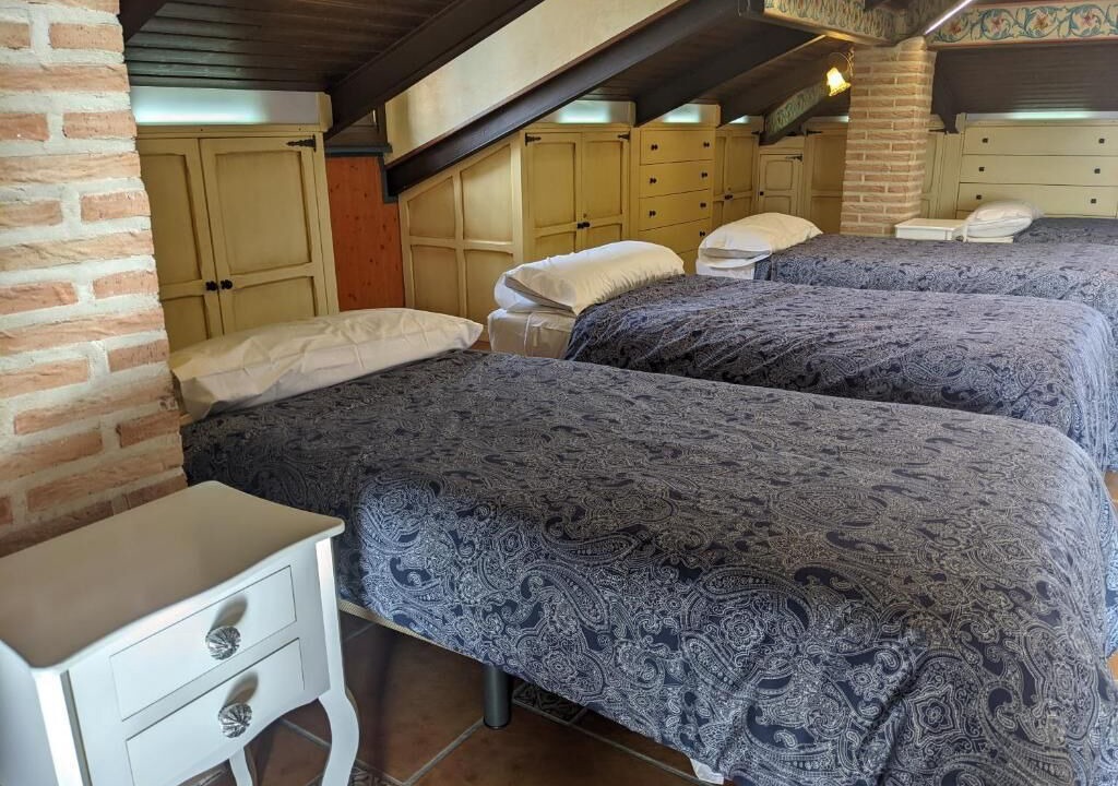 This spacious villa accommodates up to 10 guests, making it perfect for families or groups of friends. It features three elegant double suites, one with an en-suite bathroom with a shower, while the other two share an external bathroom, also equipped with a shower. Additionally, there is a large attic space that can host 4 to 6 single beds and includes a private bathroom for added convenience. The minimum stay at our villa is 2 nights.